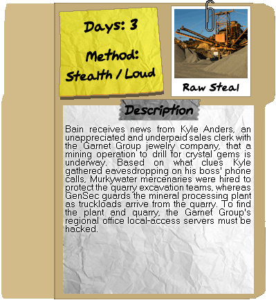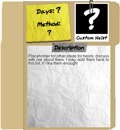 Crime.net is compromised; the identities of several members unveiled, including Dallas. While Bain scrambles to pinpoint and patch the information leak, Dallas' offshore account and spending cash linked through Crime.net, are rendered frozen and unavailable until further notice, until Crime.net recovers from lockdown mode. The unthinkable has happened: Dallas needs to find a regular job once more, as resorting to petty theft is not worthwhile the risk and his avenues to organize heists are severed. Despite the unpleasantness and menial work that may await him, Dallas must learn to adjust and wean himself off Crime.net.
