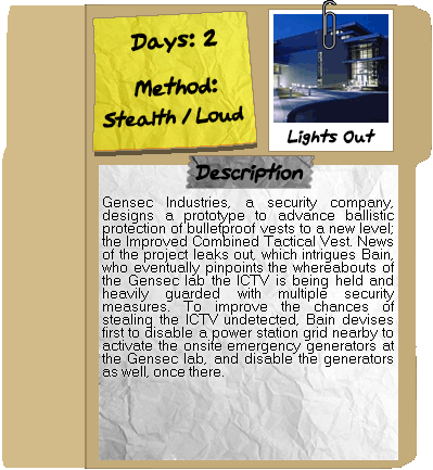 The years have changed nothing. The hit on Dallas, for his involvement in conspiring to play rival mob families against one another while part of the Chicago Syndicate, is still outstanding. The bounty for his life remains active and reward lucrative. While safeguarded under Bain's protection in Crime.net, not even Bain can monitor every awaking moment that Dallas balances his civilian activities with Crime.net.